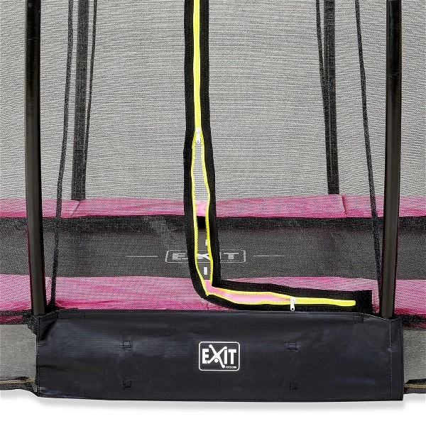 Das EXIT Silhouette Bodentrampolin ist ein kompaktes rundes Trampolin mit einem rosa Schutzrand. Es wird auf eine Grube im Boden gestellt und so ist sichergestellt, dass die Kinder bei einem Fehlsprung von einem hohen Trampolin herunterfallen können.