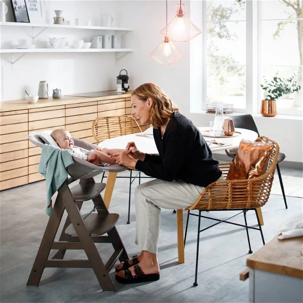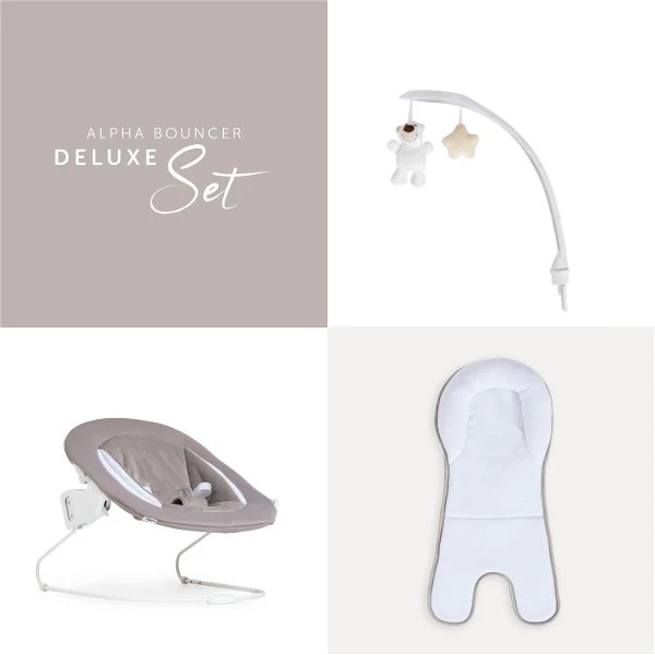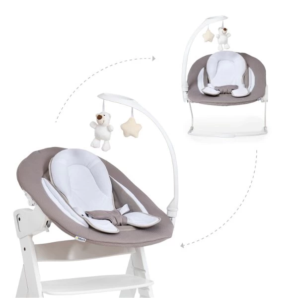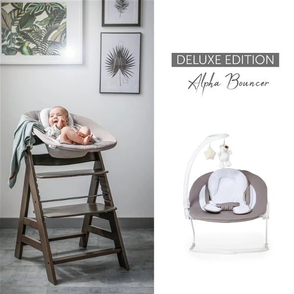 Das ideale Newborn-Set. Mit dem kuscheligen Alpha Bouncer Deluxe können die mitwachsenden hauck Holzhochstühle Alpha+ bzw. Beta+ bereits ab der Geburt genutzt werden. Neugeborene fühlen sich hier besonders wohl, denn sie können auf Augenhöhe am Familiengeschehen teilhaben.