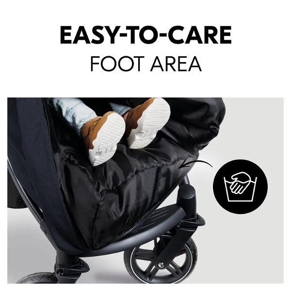 Der Fußbereich des hauck Fußsacks lässt sich besonders leicht reinigen, indem du den Zwei-Wege-Zipper öffnest und den pflegeleichten, abwischbaren Stoff im Inneren reinigst. Alternativ kannst du den Fußsack einfach bei 40° in der Waschmaschine waschen. Auf der Rückseite des Winter-Fußsacks befindet sich eine aufgesetzte Aufbewahrungstasche, in der der zusammengerollte Fußsack leicht transportiert werden kann.