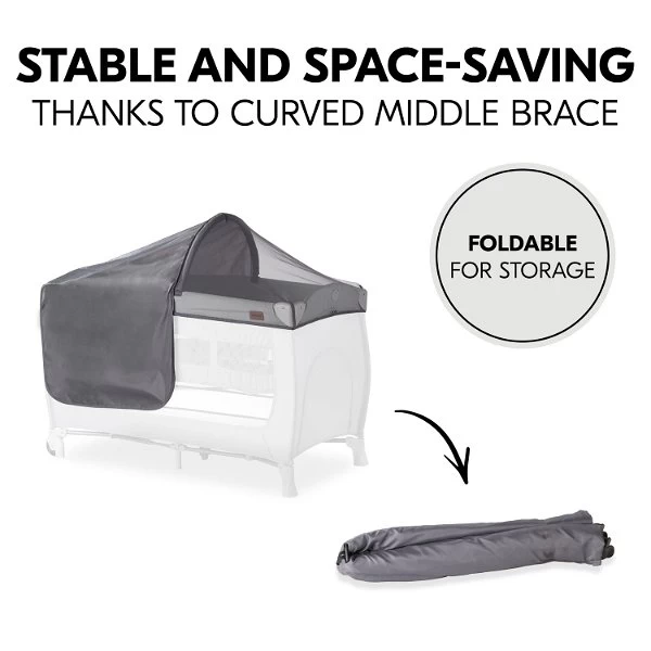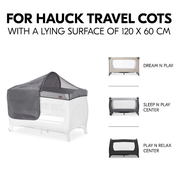 Sowohl zu Hause als auch unterwegs lässt sich der Sonnen- und Insektenschutz leicht am Reisebett befestigen. Dank eines elastischen Bundes und praktischen Klettverschlüssen ist die Montage ein Kinderspiel. Zusätzliche Stabilität bietet die flexible Mittelstrebe, die bei Bedarf zusammengeklappt und verstaut werden kann. Das Verdeck ist optimal für hauck Reisebetten mit einer Liegefläche von ca. 120 x 60 cm geeignet.