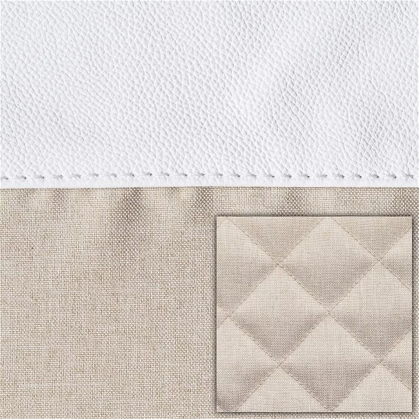 | Außenstoff 261: Leinen sandbeige gesteppt mit Lederrand weiß | Innenstoff 180: weiß mit Flauschpunkten beige |