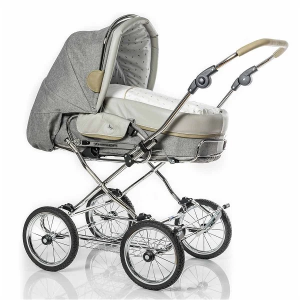 HESBA Condor Coupe Kinderwagen Außen 793 Innen 200 Teilleder Räder Schwarz 25 Cm, Ledergriff Greige