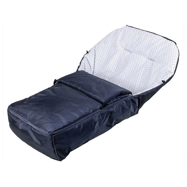 Der gemütliche Hesba Winterfußsack DUO 250 besitzt ein Thermofutter und die Farbe der Liegefläche ist in den Innenstoffen des Wagens wählbar.