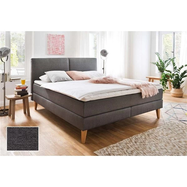 - Boxspringbett Greta (Box, Matratze) inklusive Kopfteil und Holzfüße eichefarbig