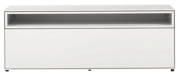 Der now! by hülsta easy Baukasten 3R verfügt über 1 offenes Fach und 1 Klappe hinter der sich genügend Stauraum befindet. Lieferung inkl. 1,5 cm hohen Stellfüßen. Der Rahmen ist in Lack-reinweiß gehalten.