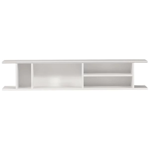 Das Lowboard verfügt über 1 offenes Fach und 1 Klappe hinter der sich ein geräumiges Fach befindet. Der Rahmen ist in reinweiß.