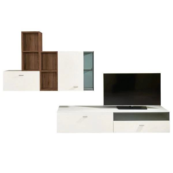 now! no.14 by hülsta Kombination 17 191x342x52 Kernnussbaum/Lack-weiß/Lack-Hochglanz-weiß