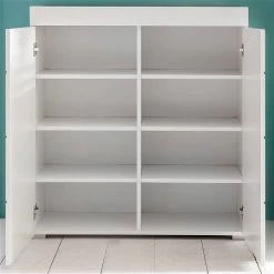 - 2x Türen mit Klarglasausschnitt (Lack Hochglanz weiß)