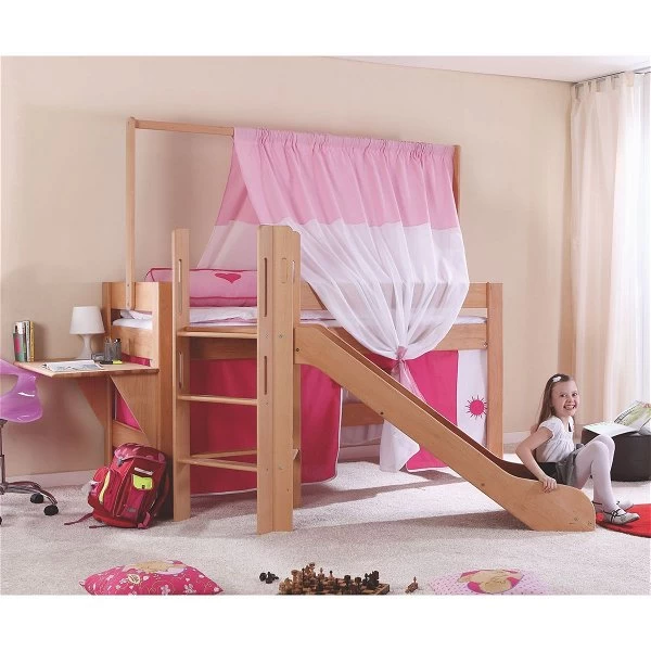 - Vorhang, Seitenkissen, Bett-Taschen, Spielbetttisch und Zeltstoffset gegen Aufpreis erhältlich
