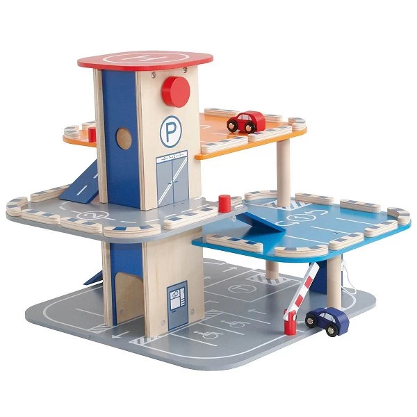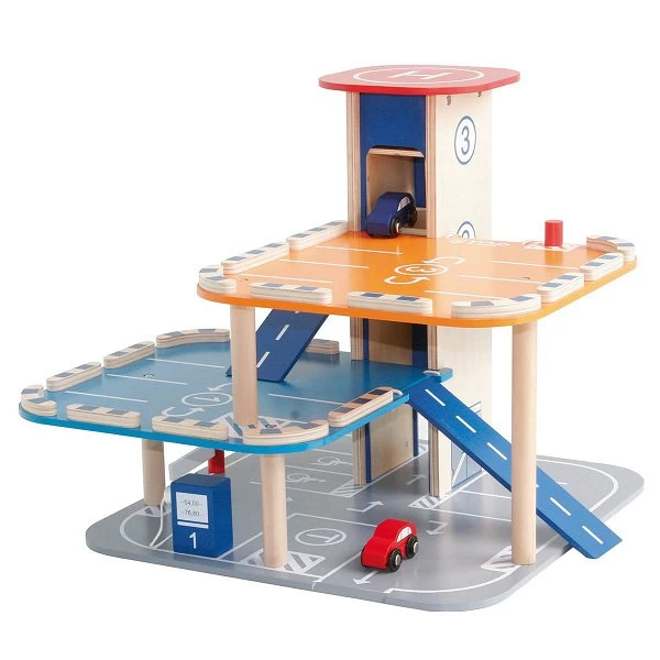 Das Roba Parkhaus lässt das Herz von Autofans höher schlagen. Es verfügt über 3 Parkebenen, 2 Holzautos, Hubschrauberlandeplatz, Lift und Tankstelle. Mit dem großem Drehknauf lässt sich der Lift leicht bedienen. An der Zapfsäule mit Tankstutzen kann bequem getankt werden ,nachdem man durch die bewegliche Schranke ins Parkhaus gefahren ist. Das Roba Parkhaus kann mit allen gängigen Spielzeugautos sowie Feuerwehrwagen, Krankenwagen und Hubschraubern bespielt werden.