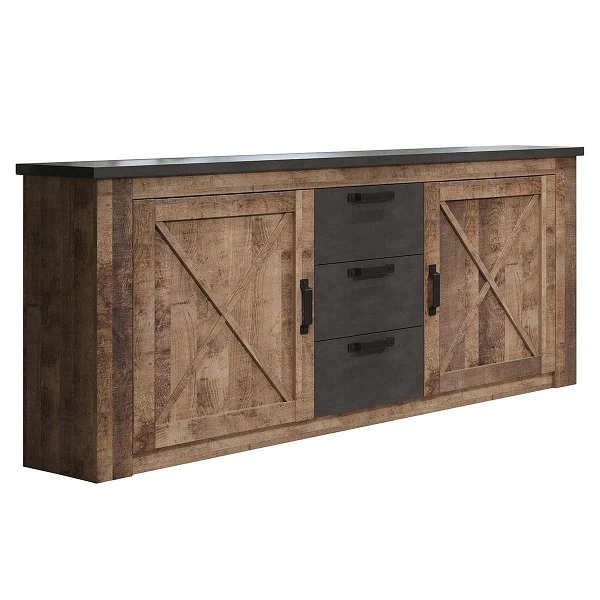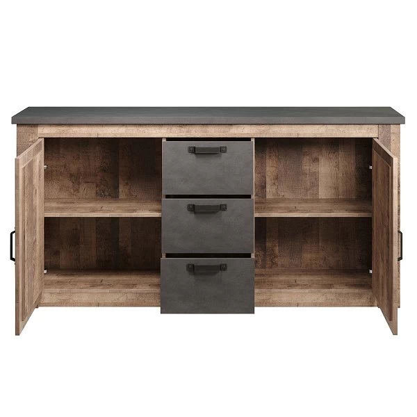 Das trendteam Georgia Sideboard sorgt für den Stauraum den Sie brauchen. Dank des Korpus im Tabak Eiche und Matera Dekor wird das Design zum wahren Hingucker und passt sich ideal dem Raum an. Schwarzfarbene Griffe gliedern sich farblich optimal in das Dekor ein. Eine optimale Langlebigkeit wird durch den Einsatz von Dekorfolie garantiert.