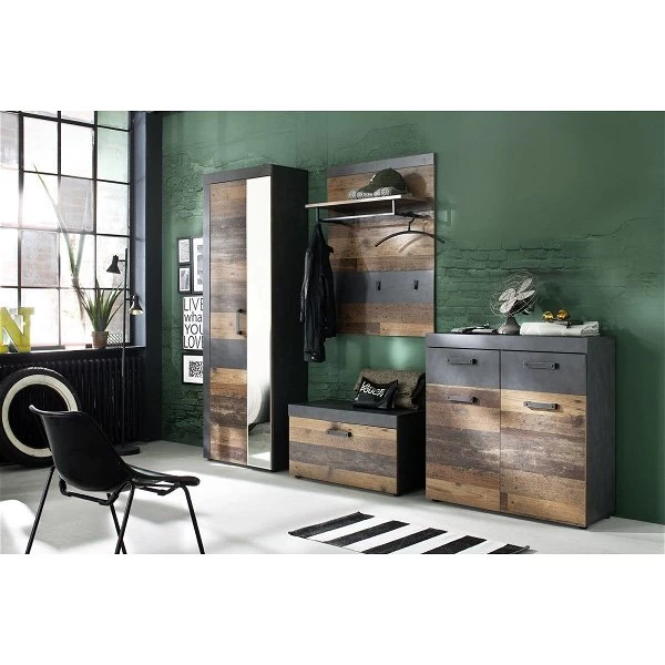 Trendteam Indy Garderoben-Set 4-teilig Old Wood / Graphit Grau | Schränke, Paneel, Bank